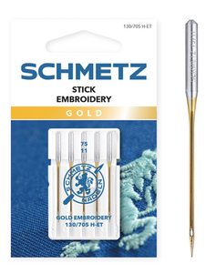 SCHMETZ Gold Titanium Embroidery Needles, Household Sewing Machine Needles (5pc pack)