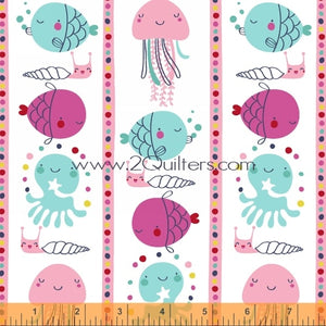 *Closeout Sale* Ahoy Matey! Fish Stripe (Pink), per half-yard