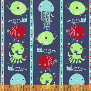 *Closeout Sale* Ahoy Matey! Fish Stripe (Navy), per half-yard
