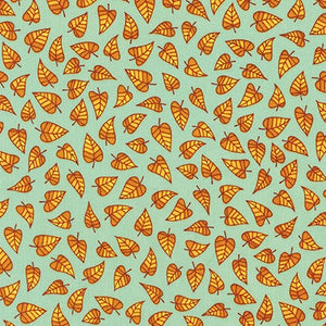 *Closeout Sale* Berry Season, Leaves in Seafoam, per half-yard