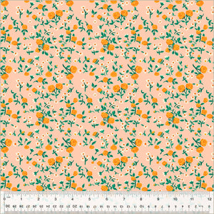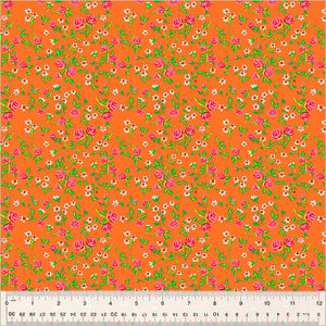 Heather Ross by Hand, Mousy Floral in Tangerine, by Heather Ross for Windham Fabrics, per half-yard