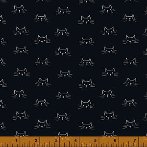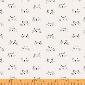 *Closeout Sale* Mod Cats, Cat Faces in Soft Black, per half-yard