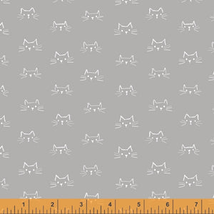 *Closeout Sale* Mod Cats, Cat Faces in Grey, per half-yard