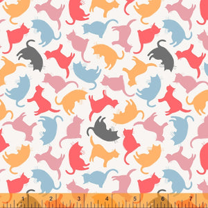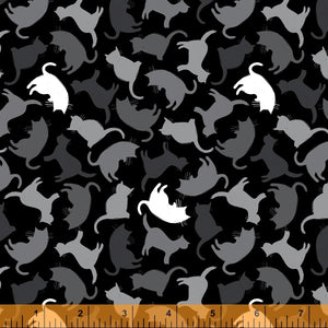 *Closeout Sale* Mod Cats, Kitty Silhouettes in Soft Black, per half-yard