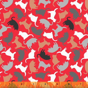 *Closeout Sale* Mod Cats, Kitty Silhouettes in Red, per half-yard