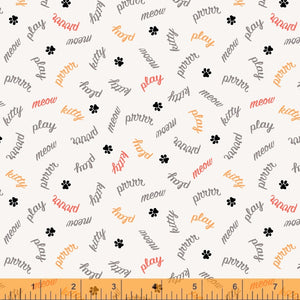 *Closeout Sale* Mod Cats, Play Words in Ivory, per half-yard