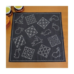 Ready To Stitch ** Olympus #SK-314 Japanese Sashiko Placemat Kit - Rabbits and Traditional Motifs (Indigo, Navy Blue)