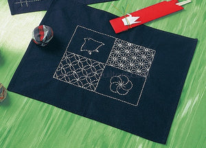 Ready To Stitch ** Olympus #SK-166 Japanese Sashiko Placemat Kit - Seven Treasures (Indigo, Navy Blue)