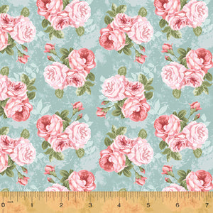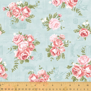Wish You Were Here, Corsage in Blue by Whistler Studios for Windham Fabrics, per half-yard