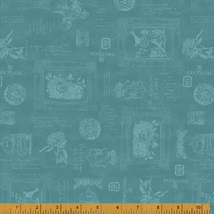 Wish You Were Here, Secret Message in Teal by Whistler Studios for Windham Fabrics, per half-yard